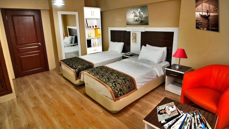 Twin Room (iki ayri yatakli oda), arkadaslar, is seyahatinde olan misafirler veya ayri yatak tercih eden konuklar icin konforlu sekilde tasarlanmistir. Odamiz ferah yapisi ve modern donanimlari ile rahat bir konaklama sunar.